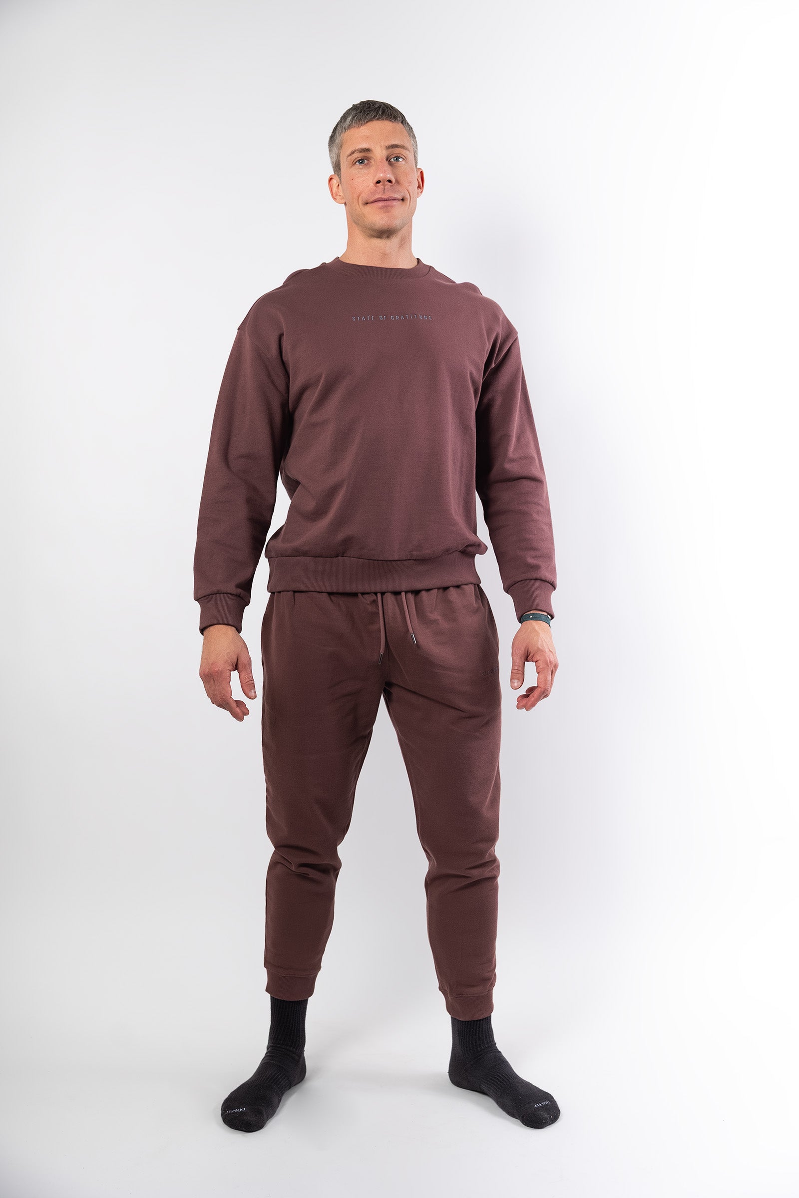 The sweatshirt delivers a clean, relaxed fit with everyday versatility. The sweatpants offer all-day ease with a tailored silhouette that moves with you. Worn together, they create a cohesive set that feels put-together without trying too hard.