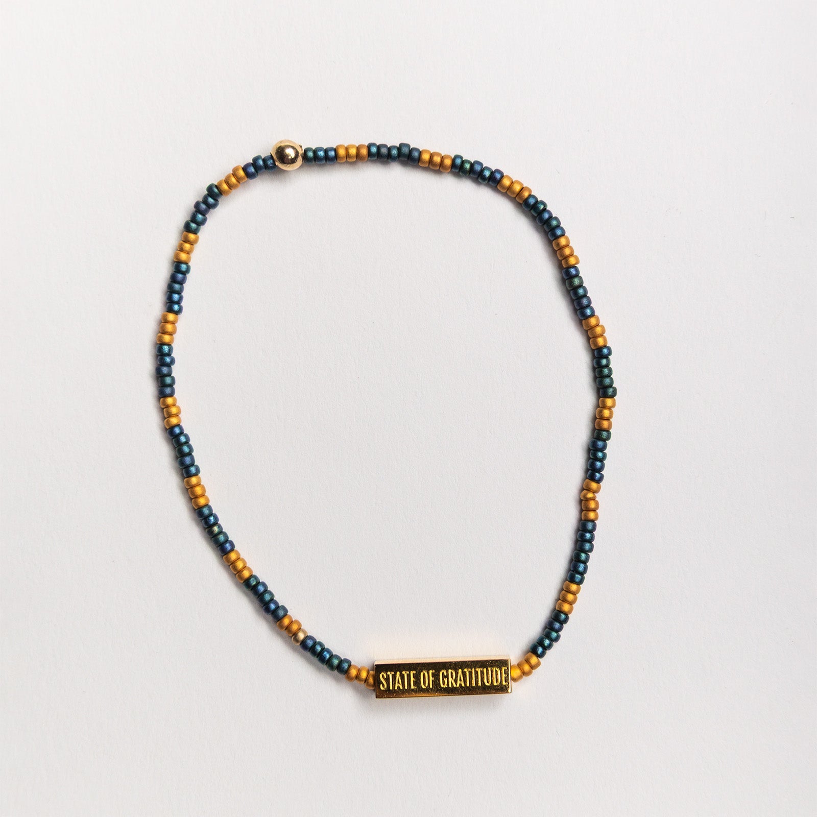 Every Strand features an 18k gold-plated bar engraved with State of Gratitude. The bar is crafted from surgical-grade, hypoallergenic stainless steel, plated for lasting beauty, and sealed with a polymer coating—so it will never tarnish or change color, even with daily wear, showers, sweat, or exposure to the elements.