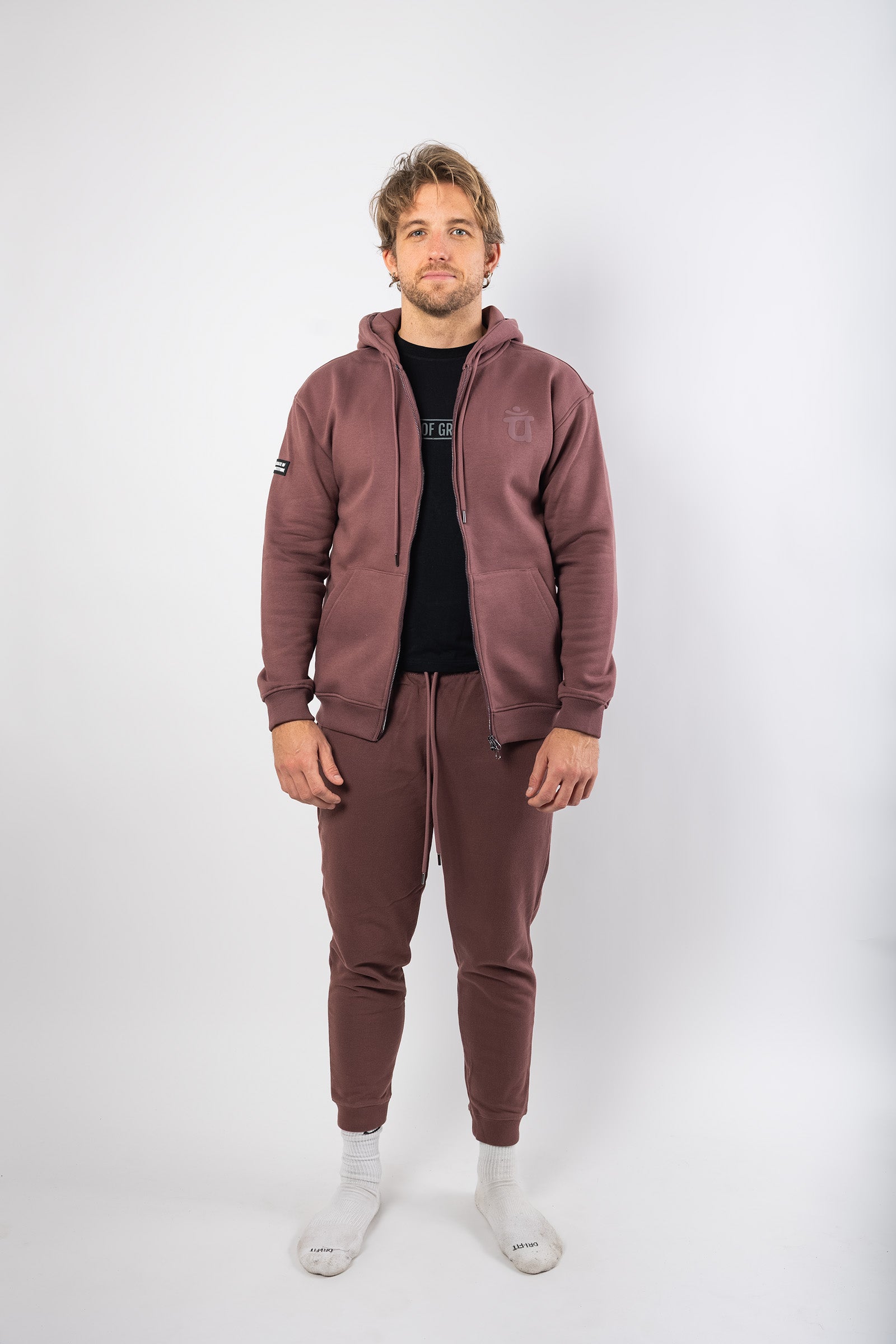 On the front, a muted heart chakra logo adds a subtle reminder to stay grounded and connected. Premium mid-weight fleece gives this zip-up a soft yet structured feel, while thoughtful details — including gunmetal drawstring closures, front pockets, and reinforced seams — make it a staple you’ll reach for again and again.